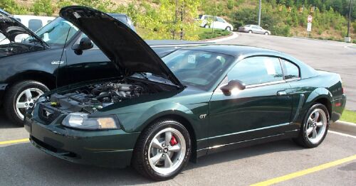 | If you haven't seen one of these yet, you should. This is the new Bullitt Mustang. These come stock with sub-frame connectors, a sleeker rear window, and a lot more. Ford is expected to make about 5000 of these in 2001. | |