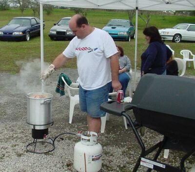 There was lots of talking and lots of eating. I'm not sure if Ty was telling Rich how to install a new head gasket, or how to pull the turkey out of the fryer! |