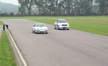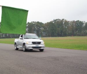 The Lightnings had fun on the track too. Here they are lined up in the hot pits getting ready for their run. |