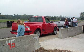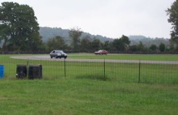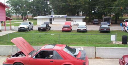 Bud "I don't spin out" Morton passes Andy Wenk. We didn't have timers setup, but Bud was running some pretty hot laps. There was a rumored picture of Bud in the infield with grass flying in the air, but it mysteriously disappeared. I think the photographer was bribed!! |