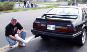 Ralph Kingrey tests Eric's "NEW IMPROVED" downpipe. Looks like a high quality item, no crush bends! |