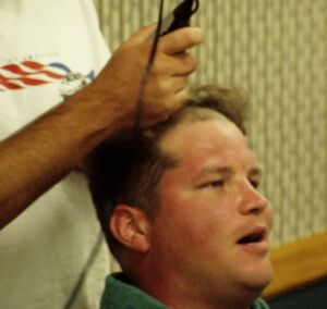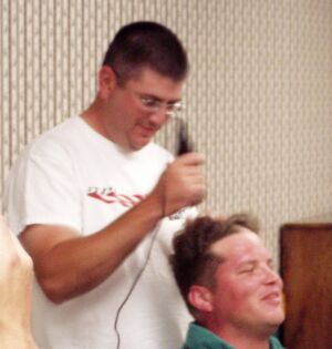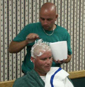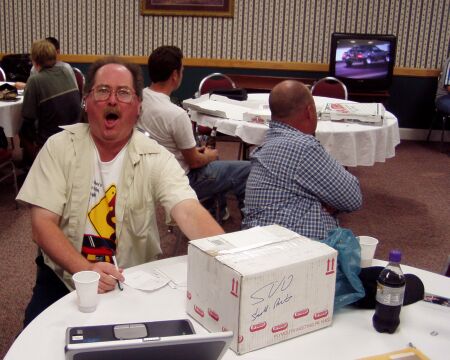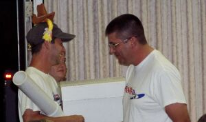 Eric (wearing his birthday hat) receives his present from the club. A 3 inch downpipe, Special made!! |