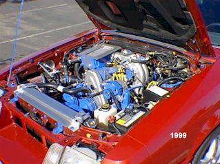 Update of Dave Sandiford's 1986 Mustang SVO At the end of the 1999 car show season, I thought I had a pretty good plan for the winter re-building project. We'd had some success showing the SVO in '99. I knew the competition, the car's strong and weak points. I had a pretty good idea about budget, and where we wanted to be for 2000. This was to be a minor make-over, mostly detail and maintenance work. An easy 2 month project even with a pessimistic schedule. Like most projects that have spiraled out of control, you could trace the beginning of the end back to a single incident. I just had to remove the wrinkle epoxy finish from that TC-Intercooler.