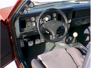 Still, things were going right along (which should have set off warning bells!). Some catalog wishbooking had spiffed up the interior with a set of BBK aluminum pedal covers, and a white Fat Knob for the shifter. I've always preferred pistol grips on pistols, actually. The 'gennie shifter is now living in a baggie.