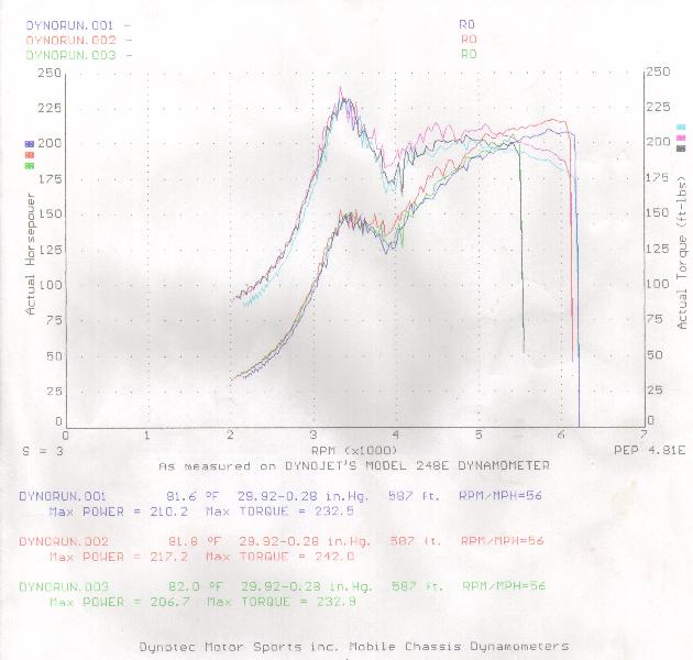 My most recent project was having the car repainted with a better-than-factory black/clearcoat paint job. The dealership body shop (yes, but this is not your ordinary dealership body shop) did a great job, with very few flaws. I replaced the doors and hatchback with new factory Ford sheetmetal, due to salt/rust damage. Word of warning: You can no longer get pre-87 doors, without a thorough search! I opted to get the 87-93 doors and have them modified. While I would like to restore my car to factory specs, I don't think this car is right for that. It has a questionable damage history (looks like it has been in two minor accidents) and I am not ready for a true restoration just yet. I don't ever plan on getting rid of this car, so it will always be my tinker/cruise/race car. What I learned on my former 2.3L cars has been applied to this one with positive results, so far. You may view my Dyno plot from Carlisle. Up till now I have only drag raced my car (best = 13.7X@100mph), but would like to try auto-x at some time (what the car was really made for). I wanted to make the car mine, but still maintain the SVO character and mystique. You be the judge.